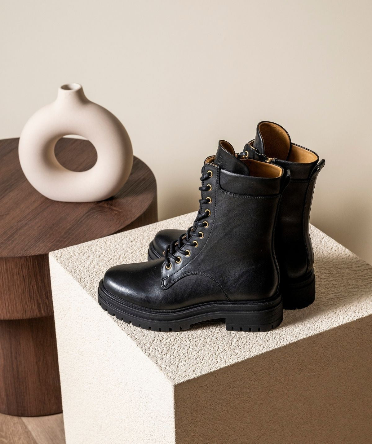 Discover the Apolline ankle boot, the perfect blend of contemporary style and practicality. Featuring a rubber wedge sole for a confident step, this ankle boot is designed to offer unparalleled comfort thanks to its 5mm foam insole. The lace-up front and side zip make dressing quick and convenient, adding a touch of functionality to your routine. Pair these ankle boots with a dress or skirt for a contemporary, feminine look, or opt for jeans for a bold, relaxed style. Finsbury Woman guarantees quality and style in a single pair. Choose the Apolline ankle boots for unwavering confidence with every step.